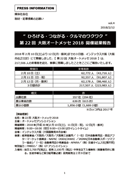 拝啓 時下、ますますご清栄のこととお慶び申し上げます。 さて、2018年2月10日から12日までの3日間、大阪・南港インテックス大阪におきまして、毎年恒例のCAR & CUSTOMIZE MOTOR SHOW「大阪オートメッセ2018」を開催する運びとなりました。つきましては、貴社媒体にぜひご掲載いただきますようお願い申し上げます。