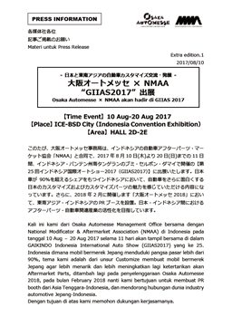 | 後援 | 経済産業省/大阪府/大阪市/大阪商工会議所/(一社)日本自動車用品・部品アフターマーケット振興会・NAPAC(ASEA/JAWA)/JASMA(日本自動車スポーツマフラー協会)/(一社)自動車用品小売業協会・APARA/(株)交通タイムス社(順不同) |