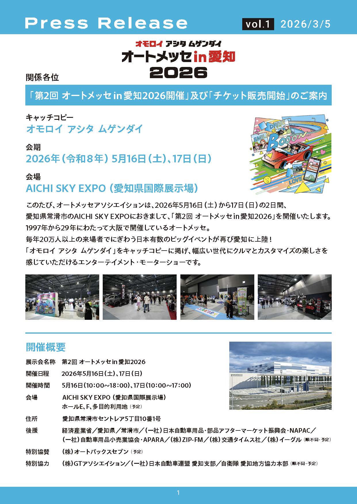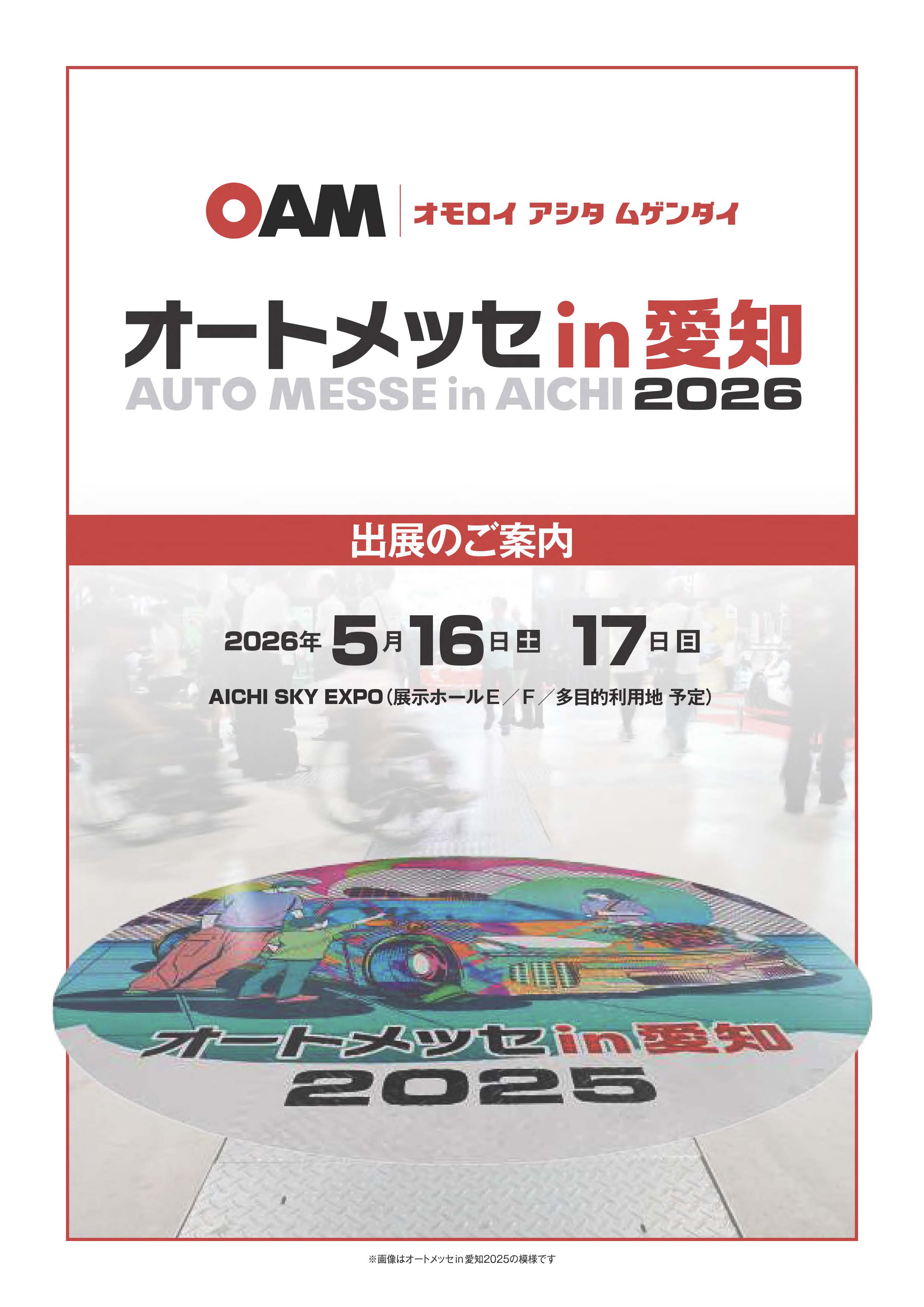 | 後援 | 経済産業省 / 愛知県 / 常滑市 / (一社)日本自動車用品・部品アフターマーケット振興会・NAPAC / (一社)自動車用品小売協会・APARA / (株)ZIP-FM / (株)交通タイムス社 / (株)イーグル(順不同・各予定) |