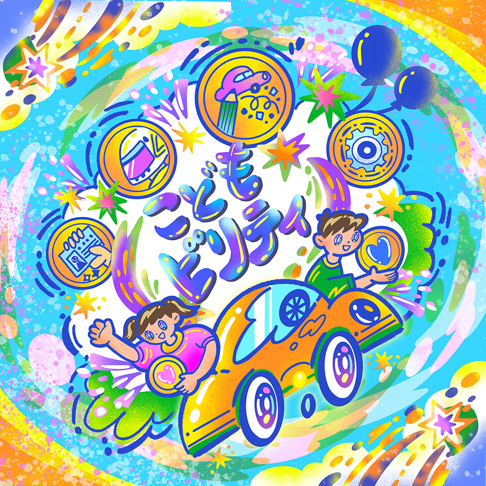 思わず笑顔がはじける、ポップで楽しい時間になればという思いを込めて描きました。