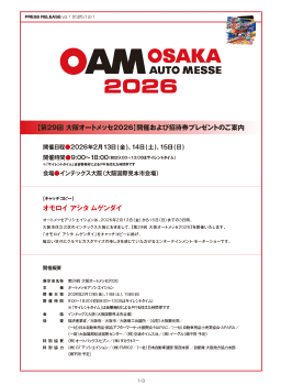 2026年2月13日から15日までの3日間、インテックス大阪におきまして、第29回大阪オートメッセ2026を開催する運びとなりました。つきましては、ぜひ貴媒体にてご紹介いただきますようお願い申し上げます。